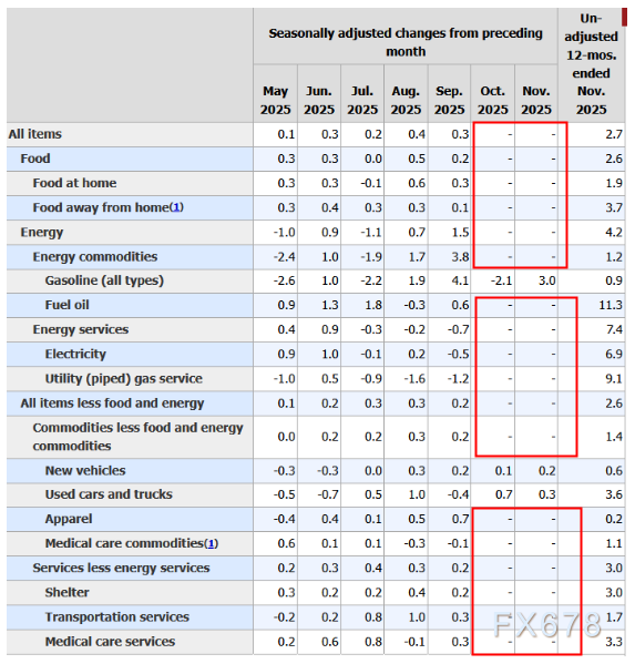 美国劳工统计局在昨晚发布的11月CPI报告中坦承,10月大部分数据未能采集,11月数据亦存在部分缺口。