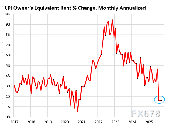 10月CPI数据完全缺失,11月数据一半是“估算”,而占整体CPI权重高达26%的业主等价租金指标,更是连续三个月“被迫”篡改,直接拉低了CPI的数值。