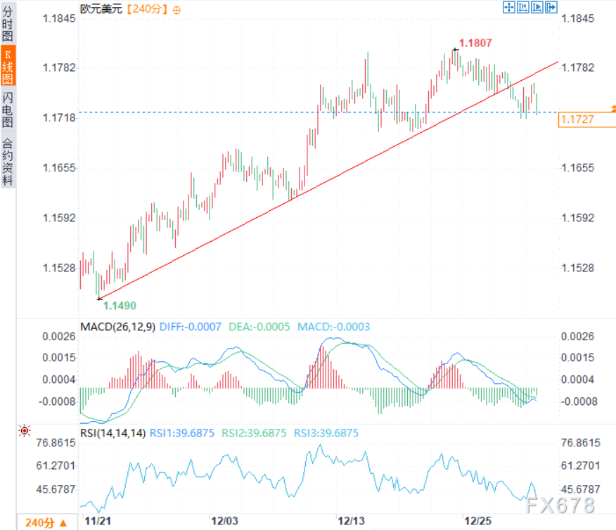 欧元延续本周初以来的温和看跌基调。由于新年银行假日导致宏观经济数据发布稀缺且交易量低迷,多数货币维持在狭窄区间内交投。